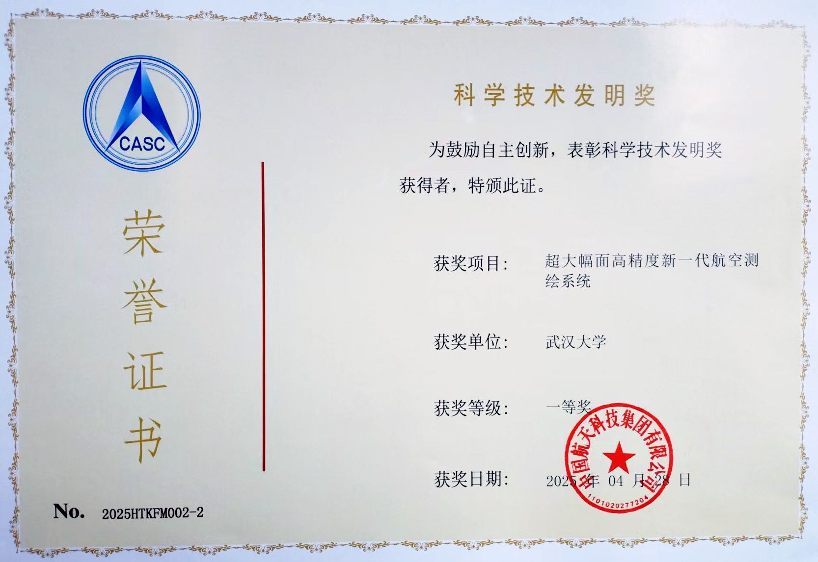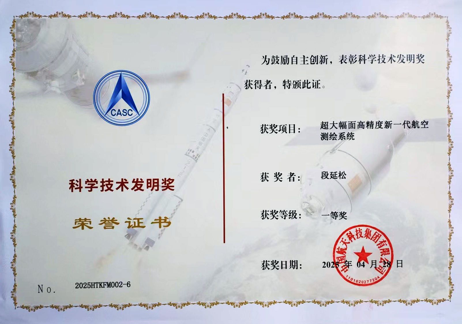 热烈祝贺段延松老师参加的“超大幅面高精度新一代航空测绘系统”获航天科技集团技术发明一等奖